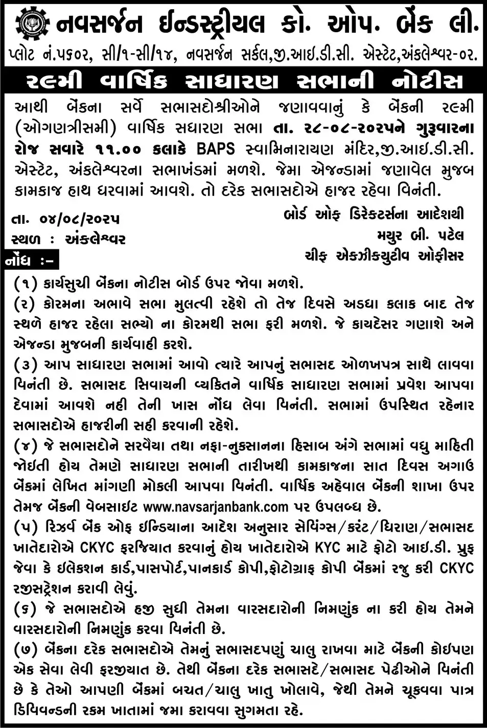 | NICBL : Welcome To Navsarjan Industrial Co Operative Bank Ltd.|